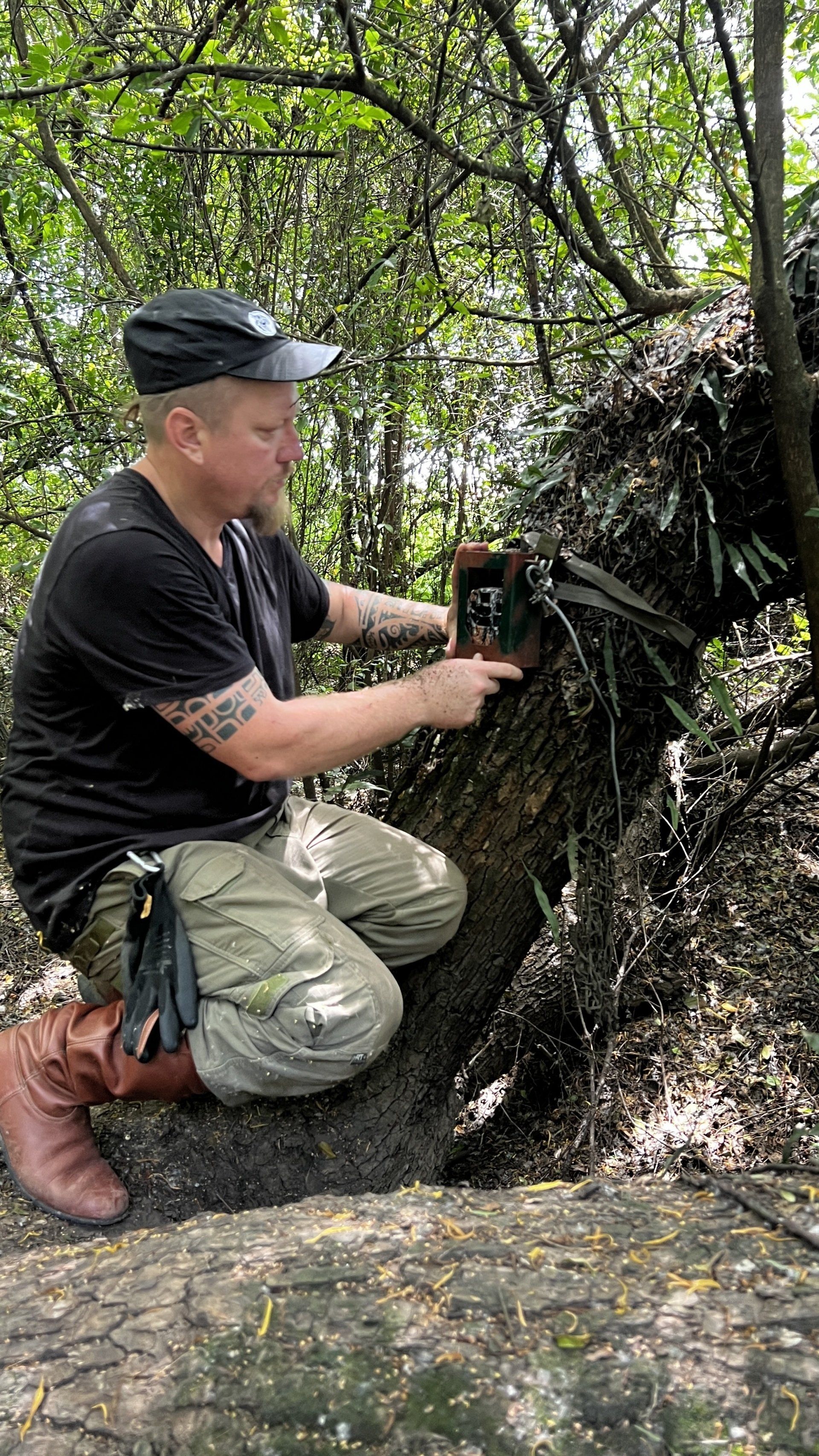 The fourth day was another successful morning, this time with a gorgeous spotted Geoffroy’s cat trapped in a forest area. It is a perfect habitat for Geoffroy’s as well as another small wildcat in the region, the margay. Dr. Ana got to work to sedate the cat and do another full work up on her like what was done on the melanistic female, Brilie. This spotted girl was also just over 5 pounds and still a little small to put a GPS collar on her. She was another new cat that had not been trapped before, so we microchipped her and decided to name her Kylian. After getting all the samples, she was also given fluids and vitamins and placed back into the trap for a couple more hours to come out of sedation. We went on to spend the afternoon using telemetry to collect more data from GPS collars and then headed back to Kylian to release her. We set her trap up on a big, beautiful, winding tree branch, and released her back into the wild!